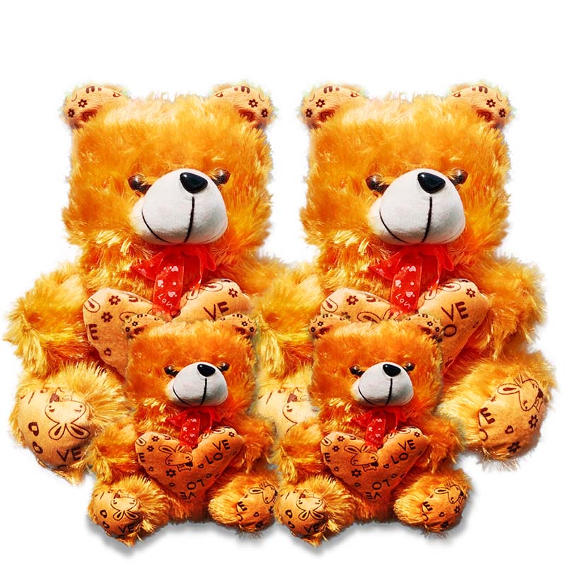 Brown Teddy Bear with Heart (13Inch) and Brown mini (6inch) Set of 4