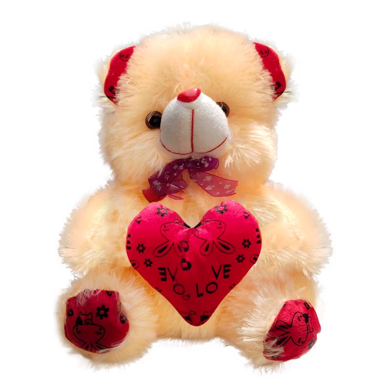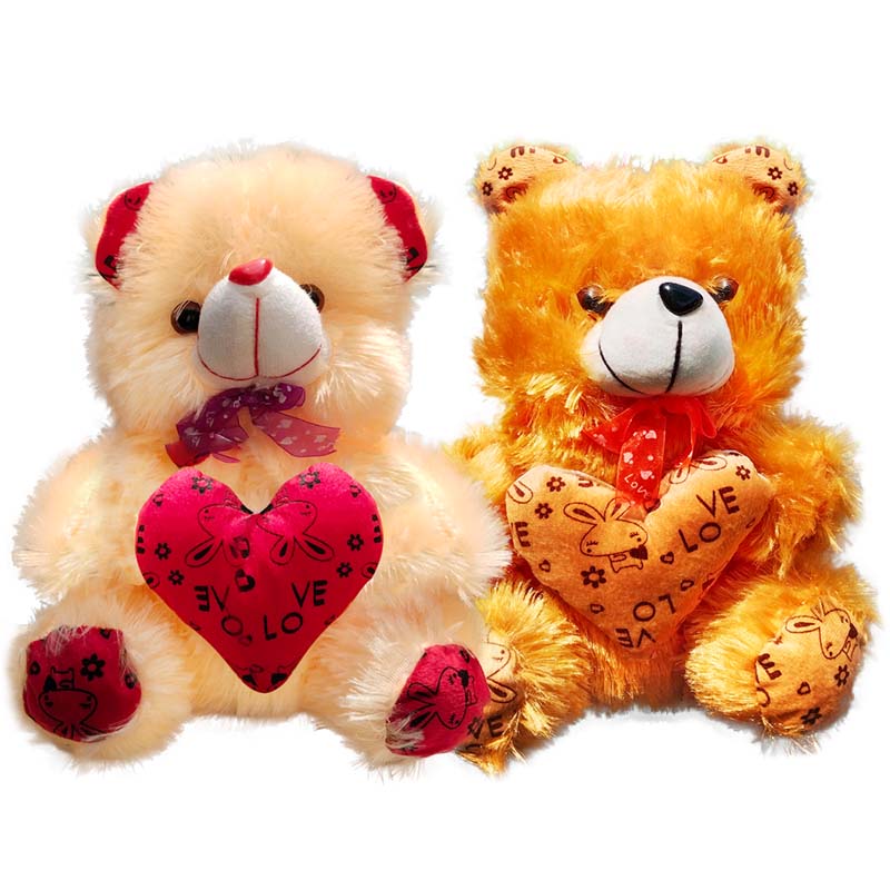 Cream and Brown Teddy Bear with Heart (13Inch) Set of 2