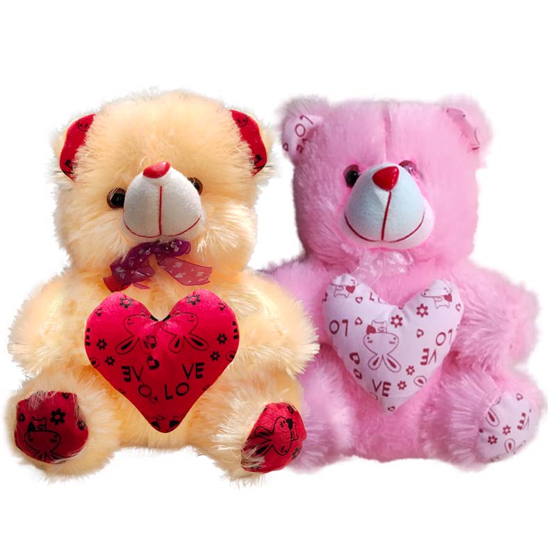 Cream and Pink Teddy Bear with Heart (13Inch) Set of 2