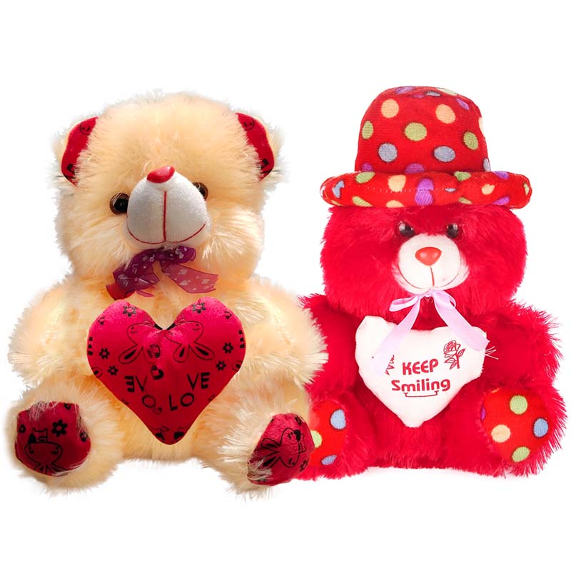Cream and Red Teddy Bear Cap Style with Heart (13Inch) Set of 2