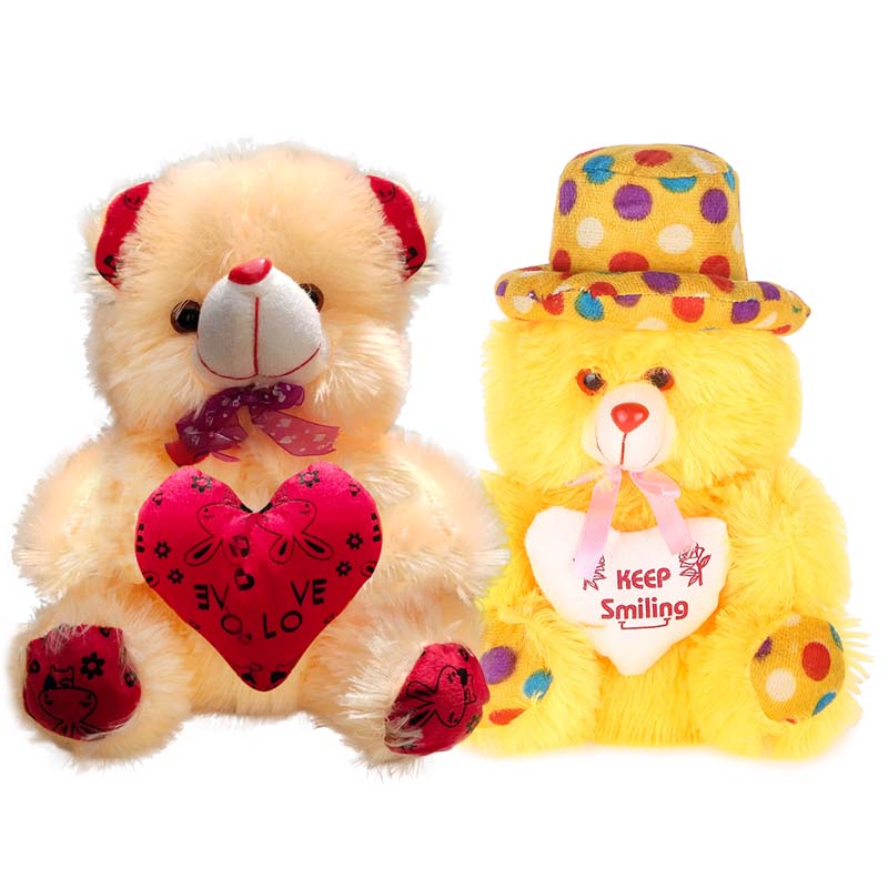 Cream and Yellow Teddy Bear Cap Style with Heart (13Inch) Set of 2