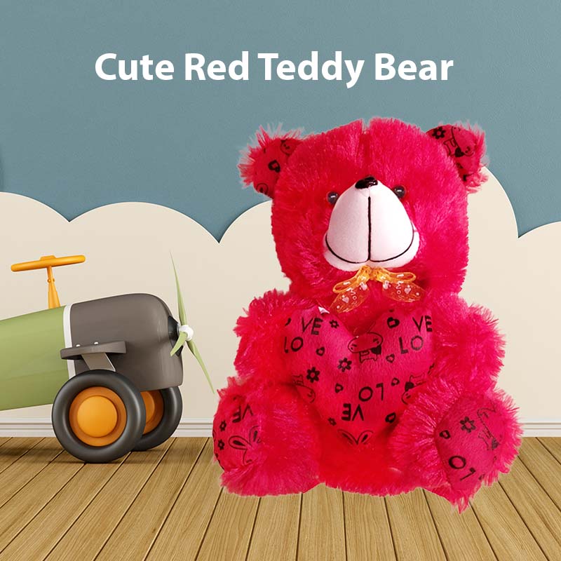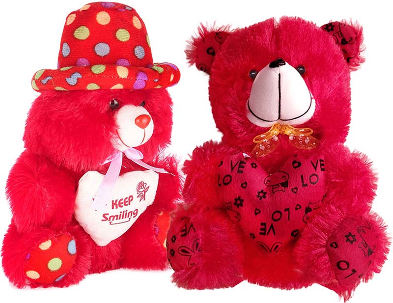 Red Teddy Bear Cap Style (12Inch) with Red Teddy (13 Inch) Set of 2