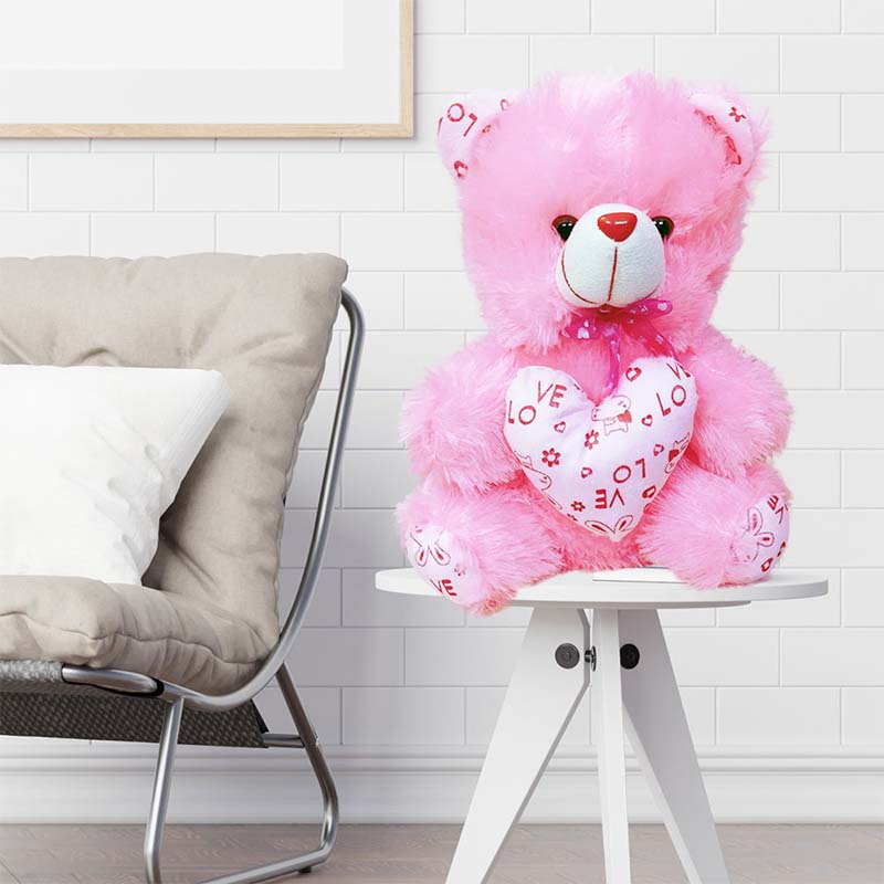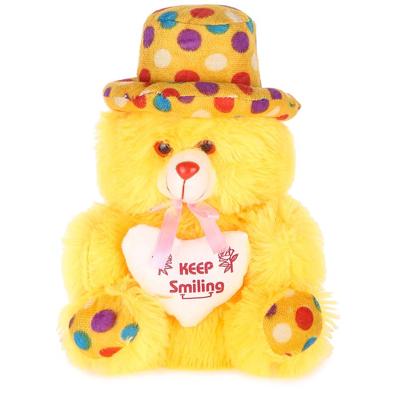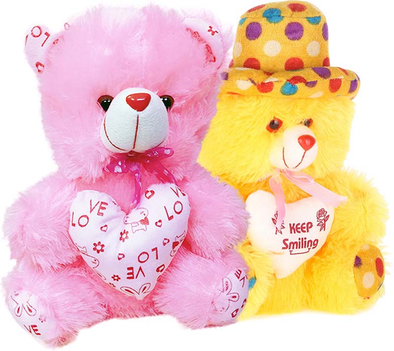 Soft Teddy Bear Cap Style with Heart Yellow 12 Pink 13 Set of 2 (13 inch)
